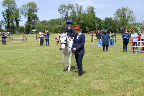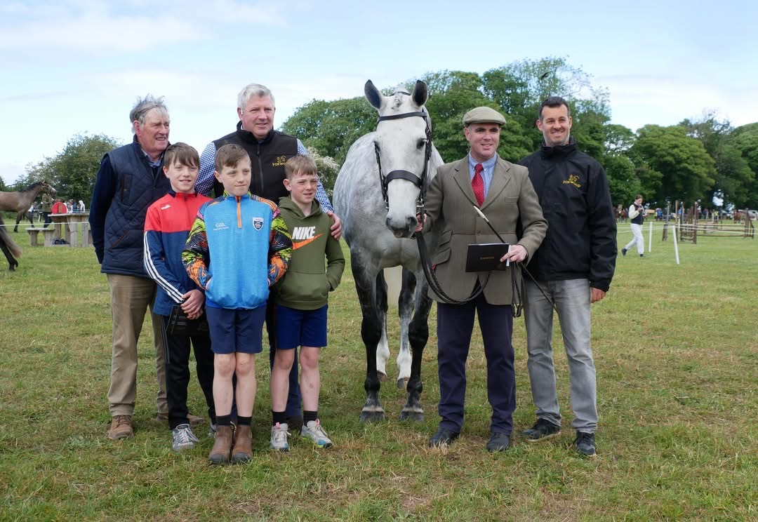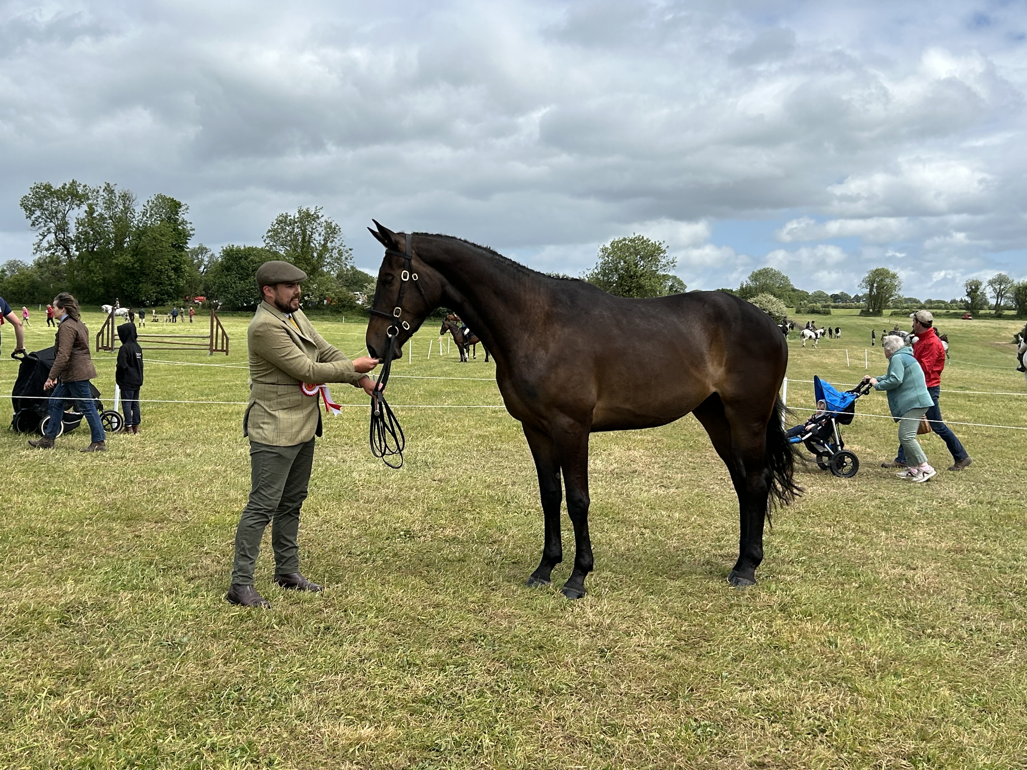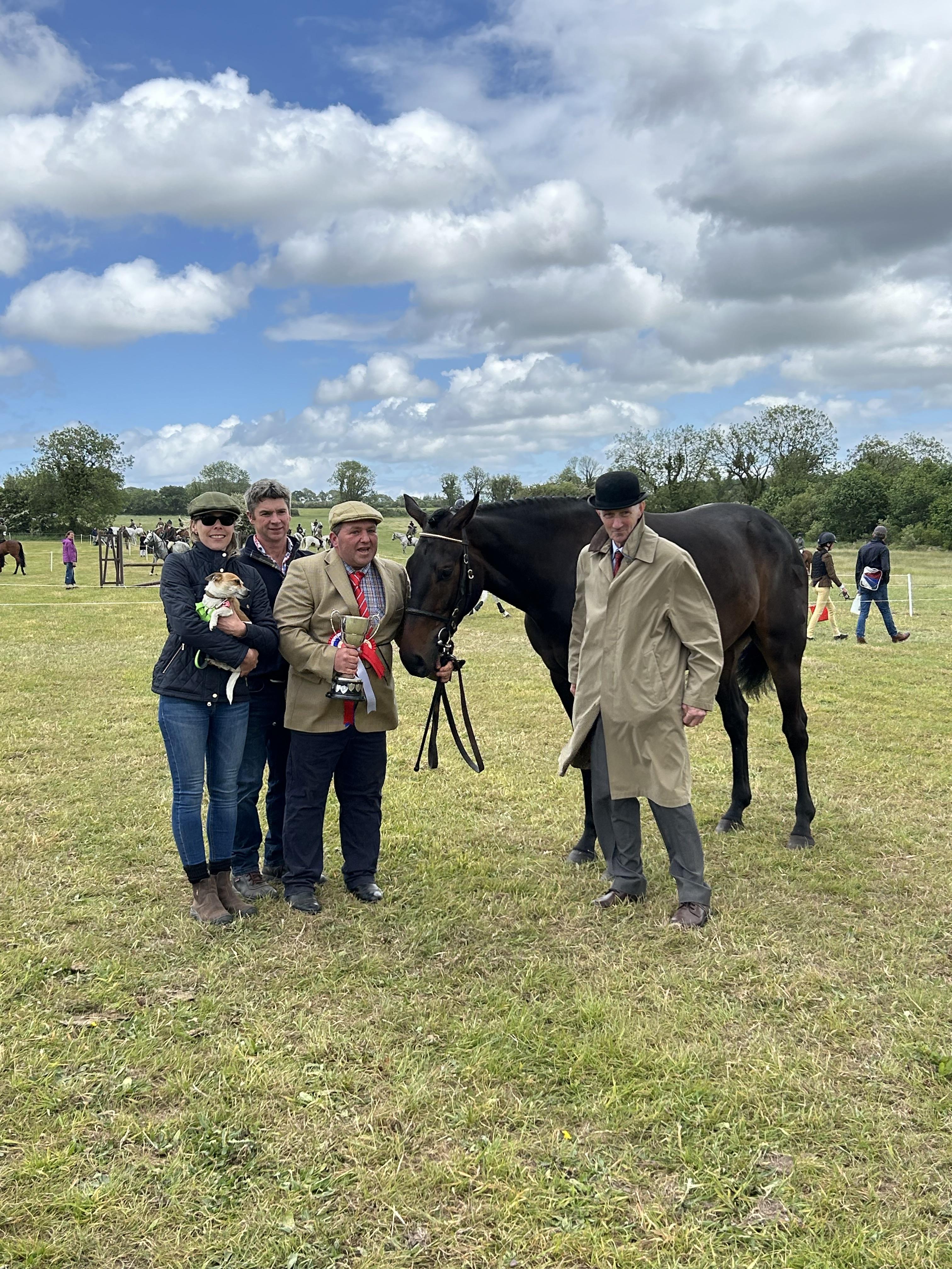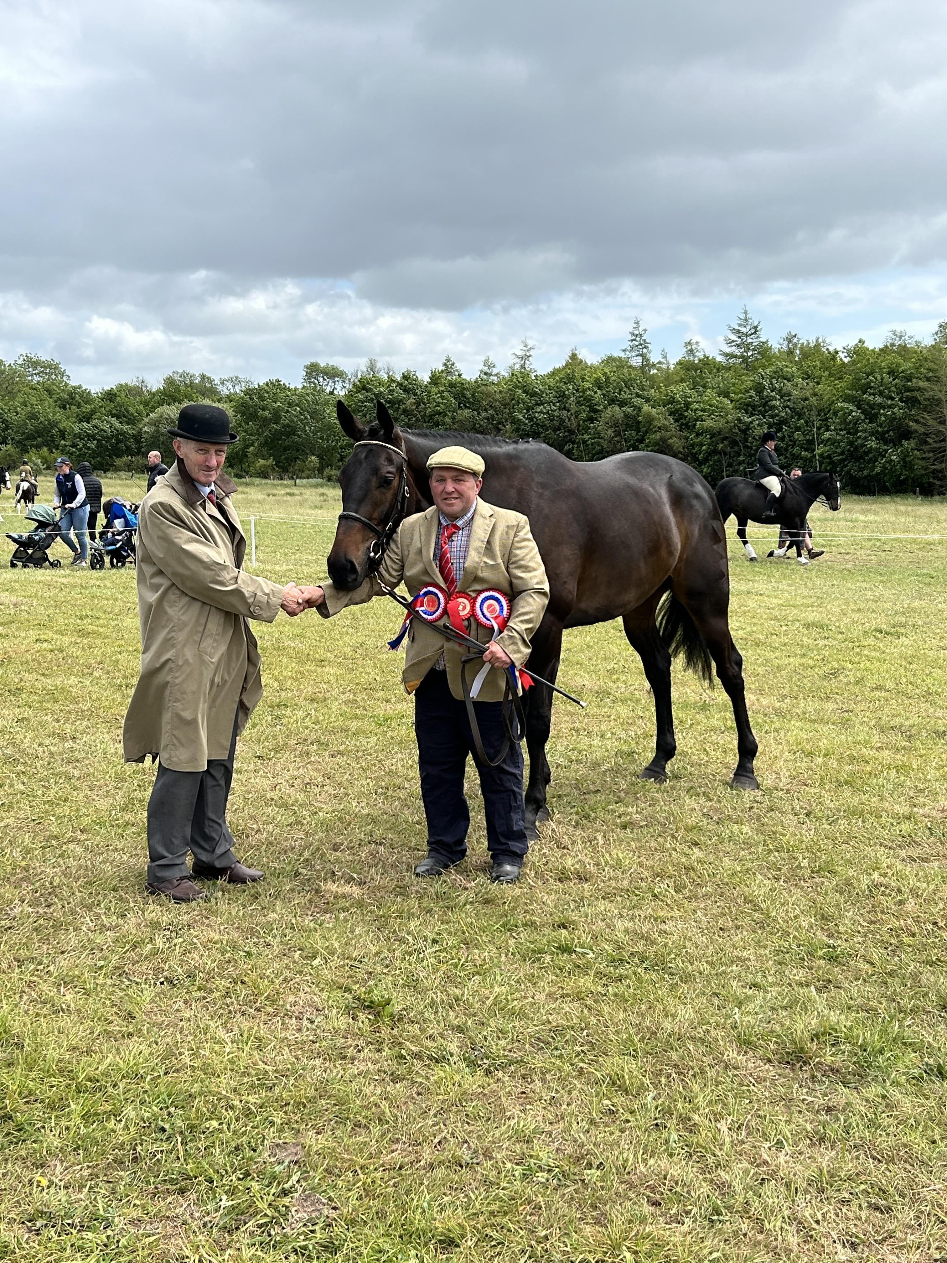 Champion Thoroughbred and Odon Equestrian Champion Young Horse Patrick McCarthy with Alexander (Blue Bresil - Oscar Rebel) pictured with Judge Aidan Foran.JPG