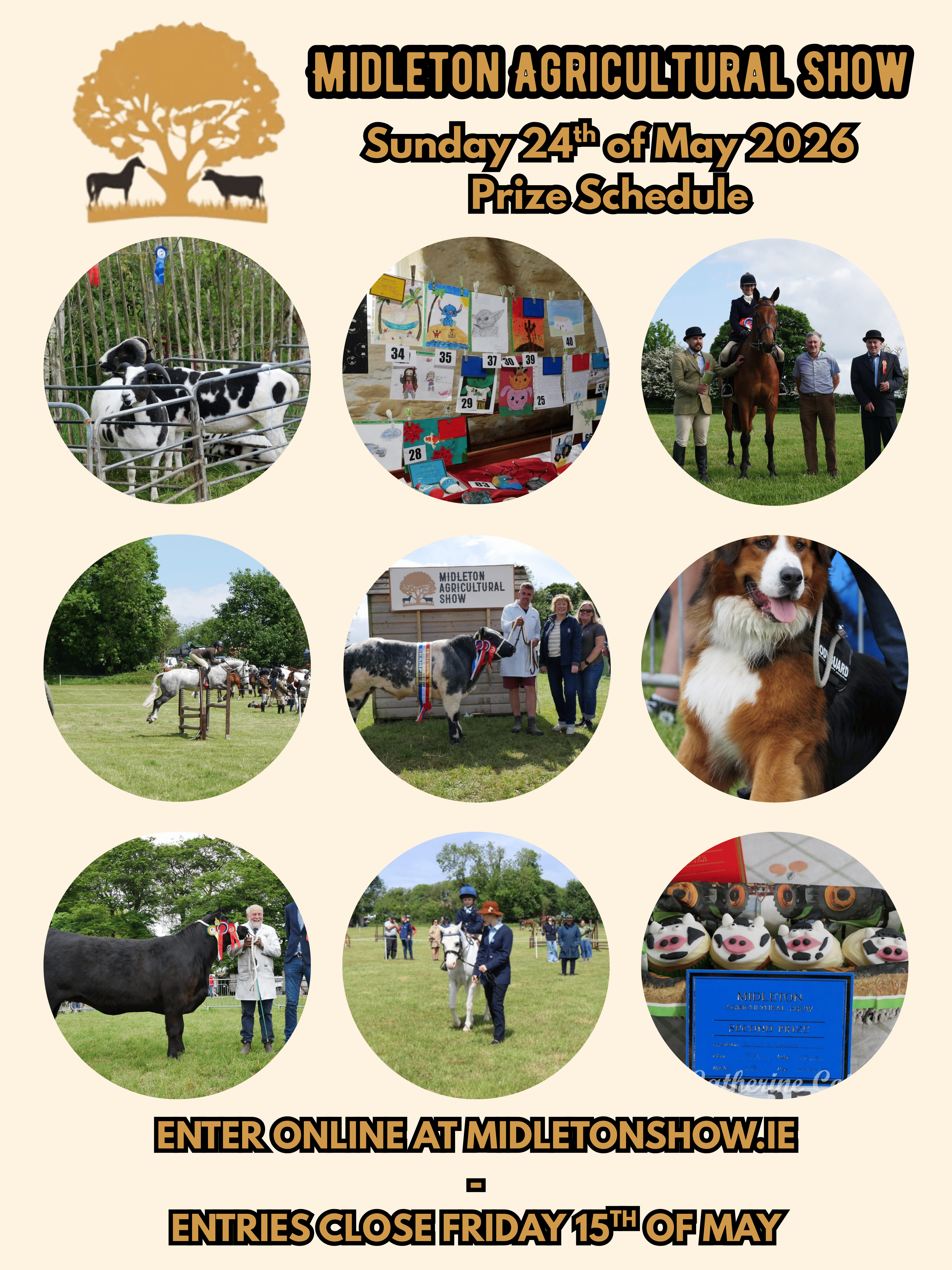 Have a browse of this year' show schedule and get your entries in online before closing on Friday 15th of May at 5pm. Check it all out here