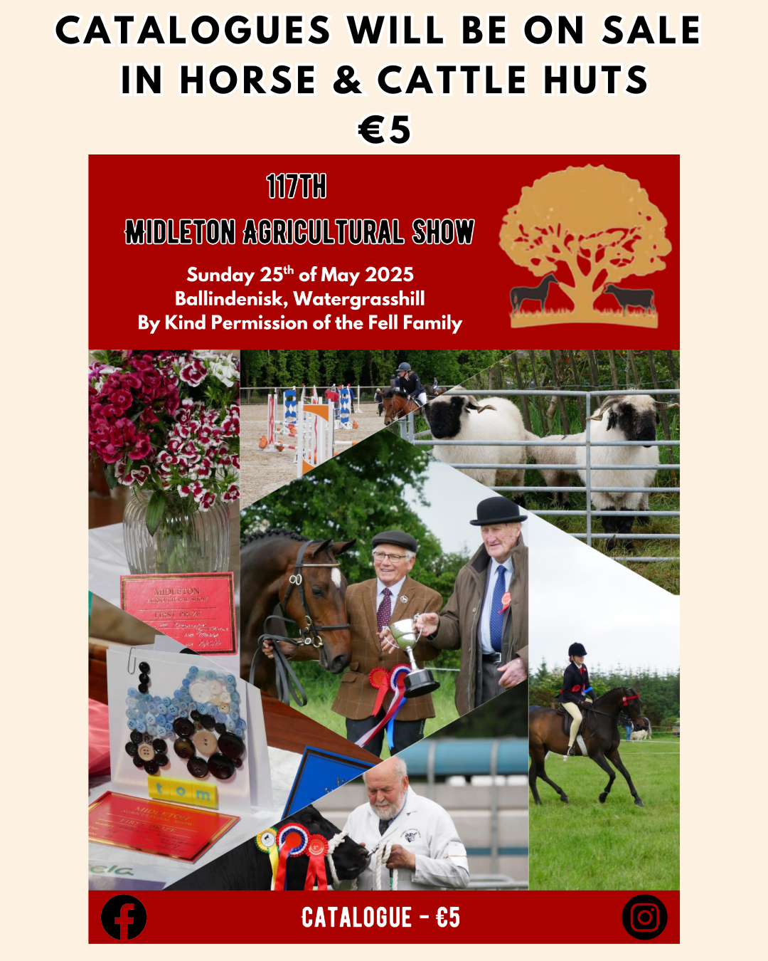 Catalogues will be on sale in the Horse and Cattle huts for €5 on show day.